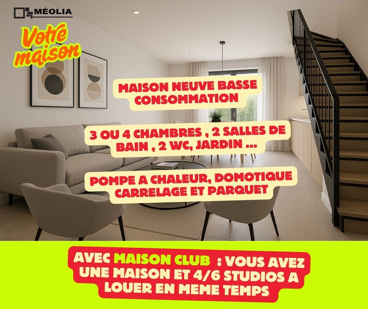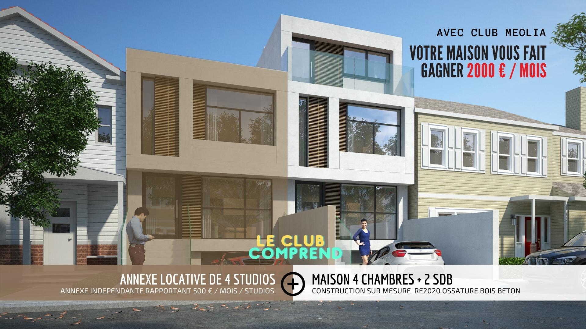Avec Club MEOLIA, votre maison vous rapporte jusqu'à 3000 € de revenus locatifs par mois . C'est bien plus qu'une maison , c'est une maison accolée à un bloc de chambre destinée à être louée meublée vous appartenant .